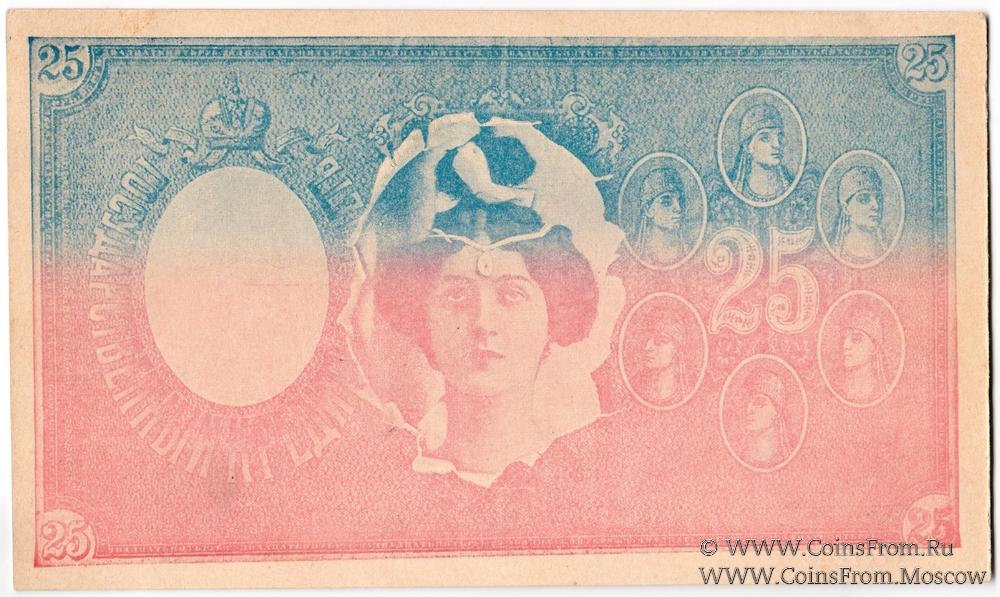Открытка стилизована под 25 рублей 1899 г., с изображением девушки по центру (Лина Кавальери). Вариант 2: портрет по центру.