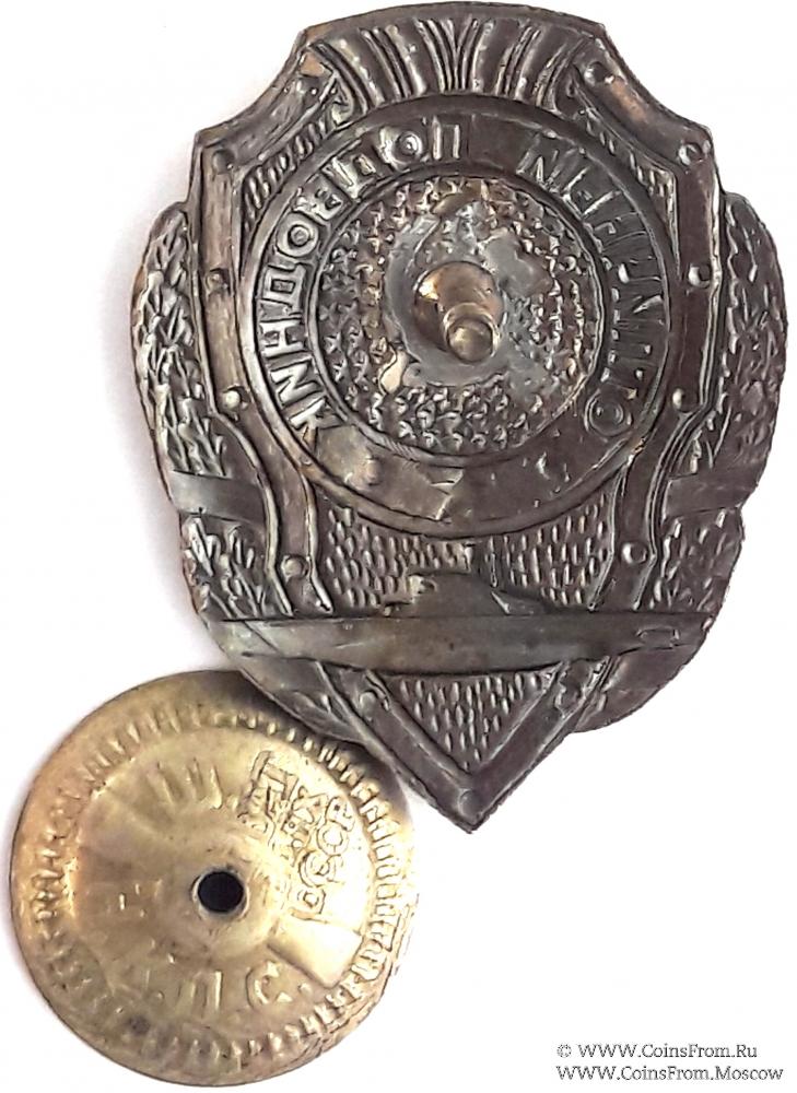 Материал: латунь, эмаль, винт. Маркировка на закрутке ШМЗ НКПС. Размер 46Х36 мм.