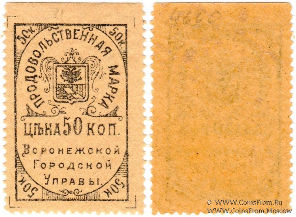 Продовольственная марка без даты. С зубцами с 4-х сторон. Воронежская Городская Управа.