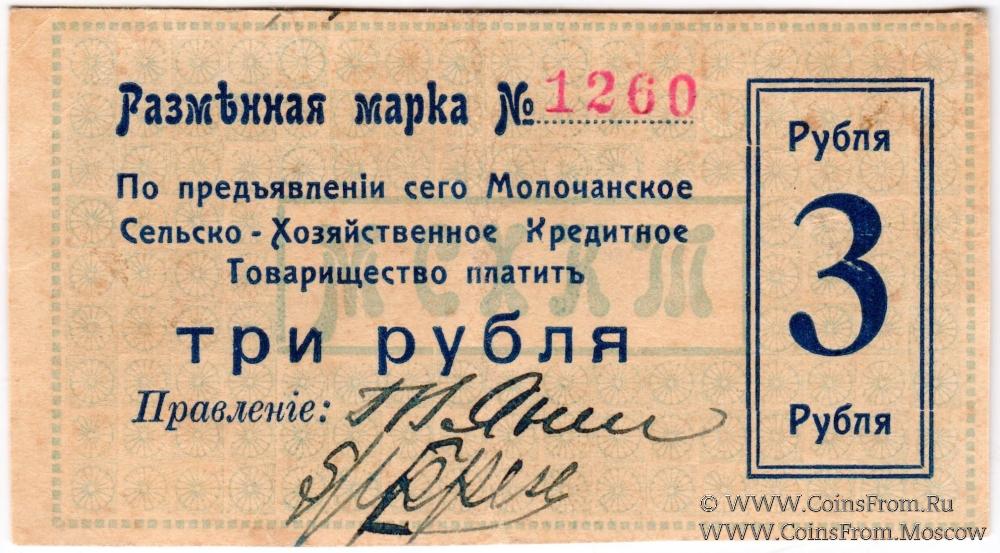 Разменная марка без даты (1918 г.). Номер 4-значный, красный. Молочанское Сельско-Хозяйственное Кредитное Товарищество (МСХКТ).