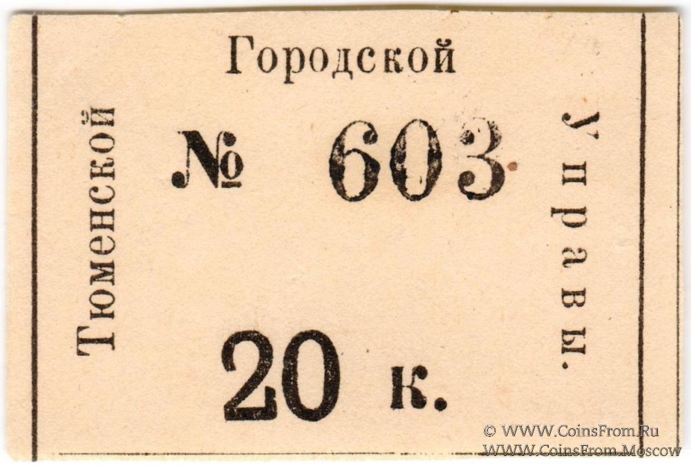 Без даты (1918 г.). Цифры номинала прямые и широкие. Тюменская Городская Управа.