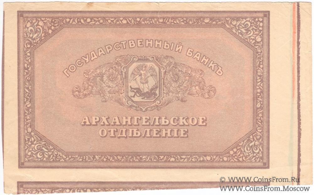 Чек 1918 г. (без даты), без номера. Бумага серая. БРАК: аверс не пропечатан (один прогон краски). Архангельское Отделение Государственного Банка.