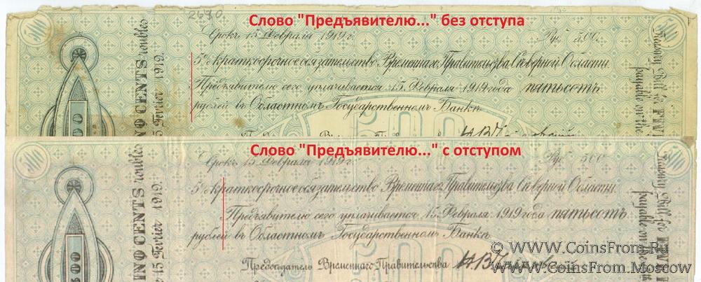 5% краткосрочное обязательство Временного Правительства Северной Области. В тексте с "и" после "финансовъ". Слово "Предъявителю..." без отступа.