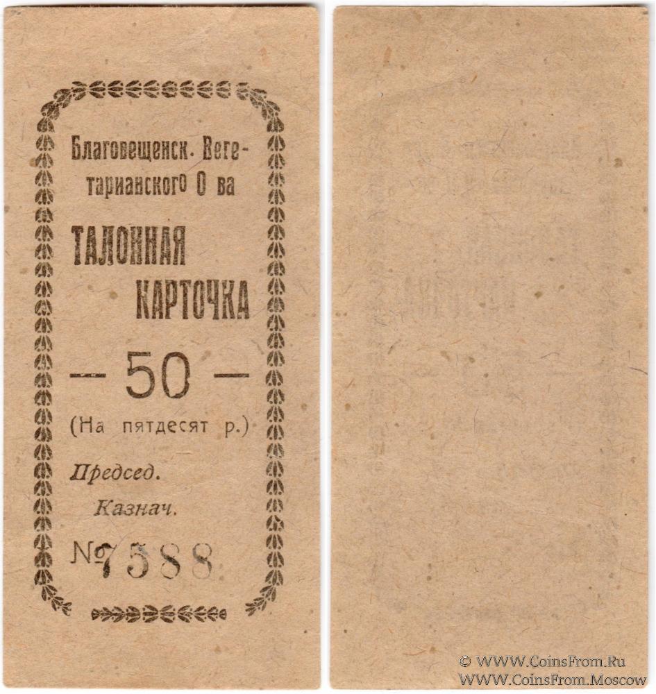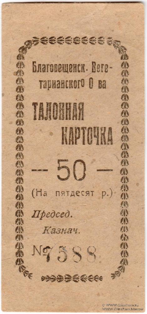 Талонная карточка без даты. Благовещенское Вегетарианское Общество.
