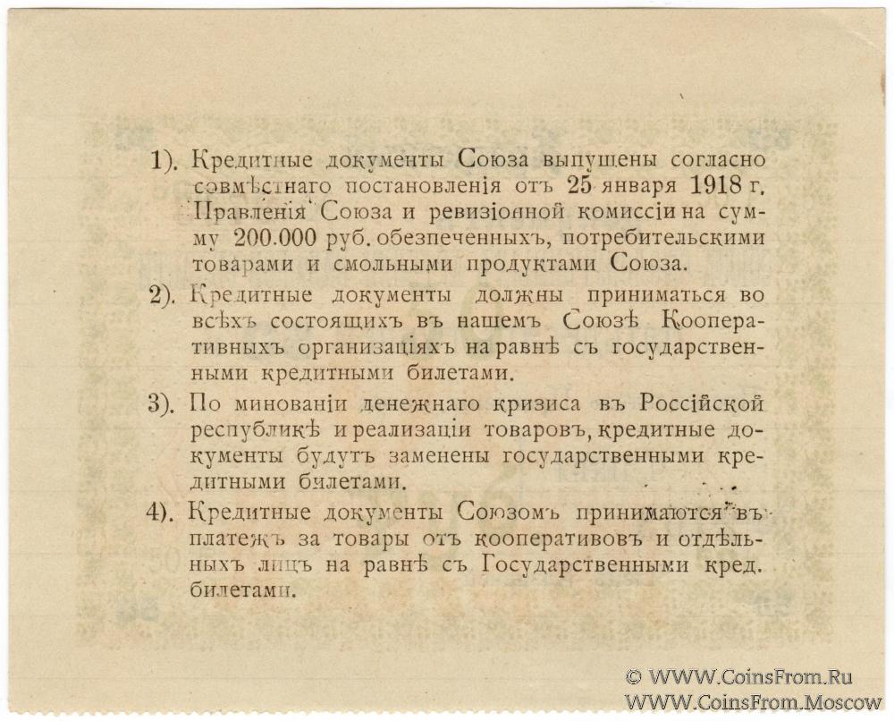 Кредитный документ 1918г. Союз смолокуренных артелей Важской области.