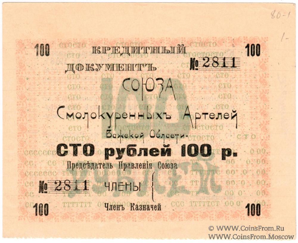 Кредитный документ 1918г. Союз смолокуренных артелей Важской области.