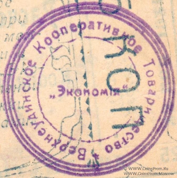Круглая печать на реверсе: "Верхнеудинское Кооперативное товарищество (по кругу) / "Экономия" (по центру)".