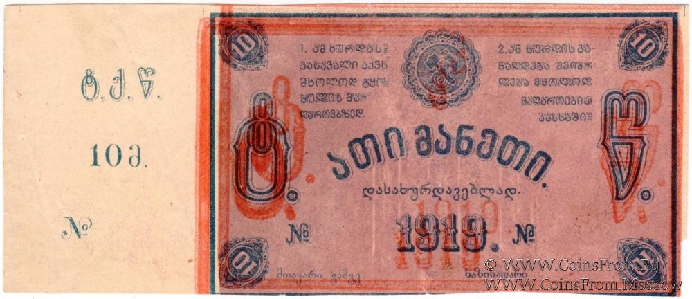10 рублей 1919 г. (Ткибули) БРАК