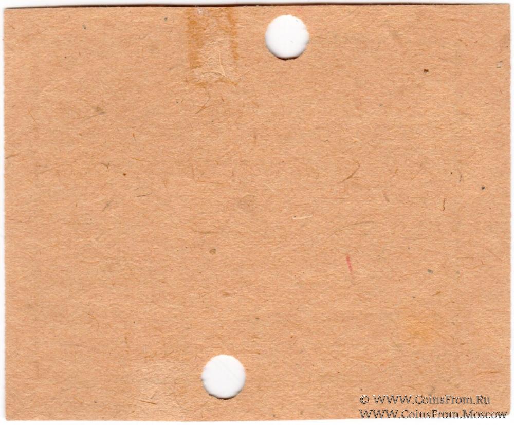 Без названия 1924 г. На аверсе печать "Касса № 2". Гашение (2 отверстия). Канское Городское Общество Потребителей.
