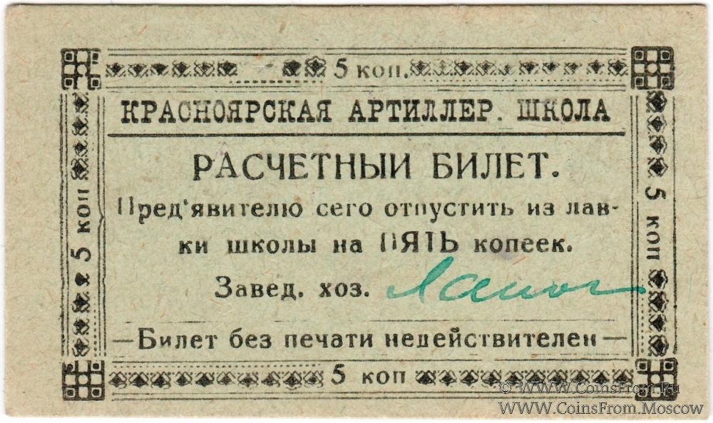 Расчетный билет без даты. Законченный: с подписью на аверсе и печатью на реверсе. Красноярская Артиллерийская школа комсостава Р.К.К.А.
