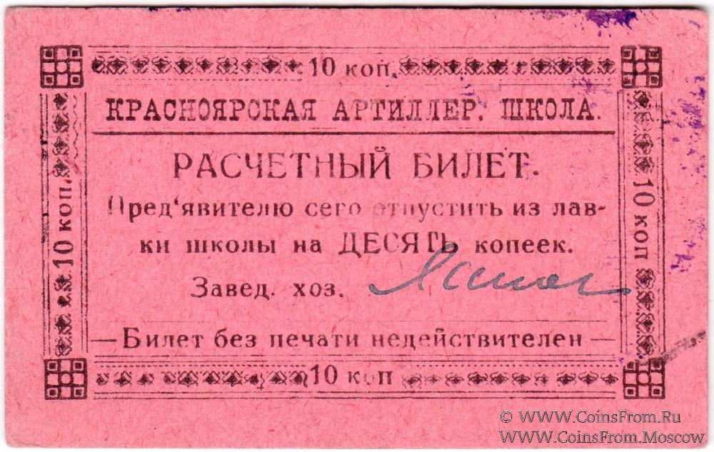 Печать круглая: "Красноярская артилерийская школа комсостава Р.К.К.А. *" (по большому кругу) / "Для хозяйственных и денежных документов" (по малому кругу) / Герб РСФСР (по центру) и надптсью вокруг "РОССИЙСКАЯ СОЦ. ФЕДЕР. СОВЕТ. РЕСП."
