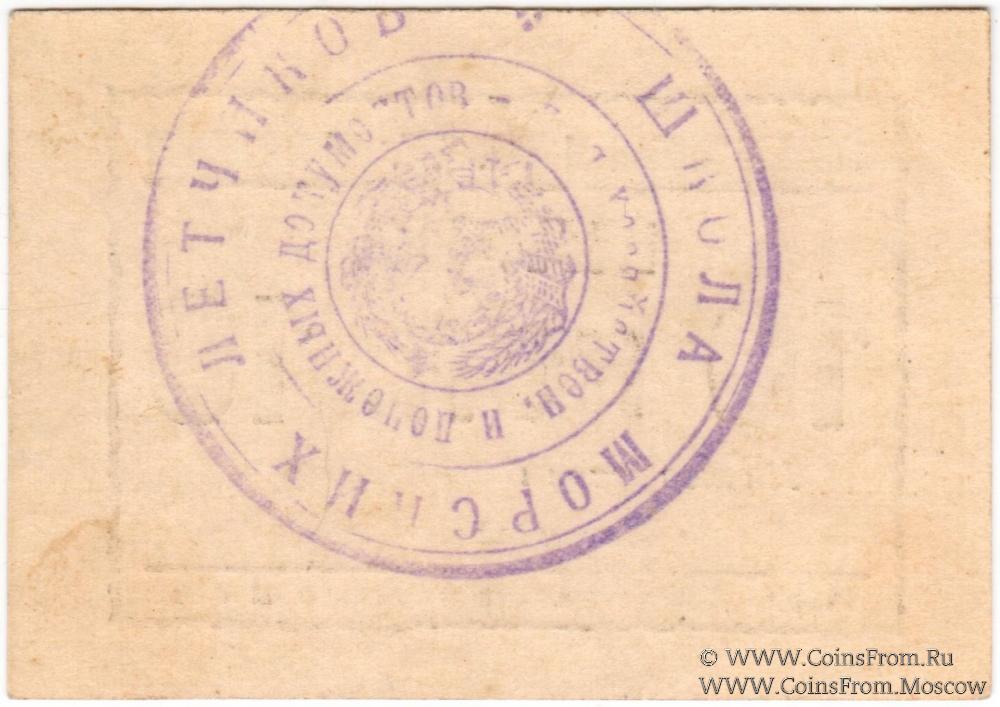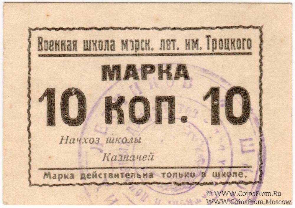 Печать коруглая: Герб СССР (по центру) / "ШКОЛА МОРСКИХ ЛЕТЧИКОВ *" (по большому кругу) / "для хозяйствен. и денежных документов *" (по малому кругу).