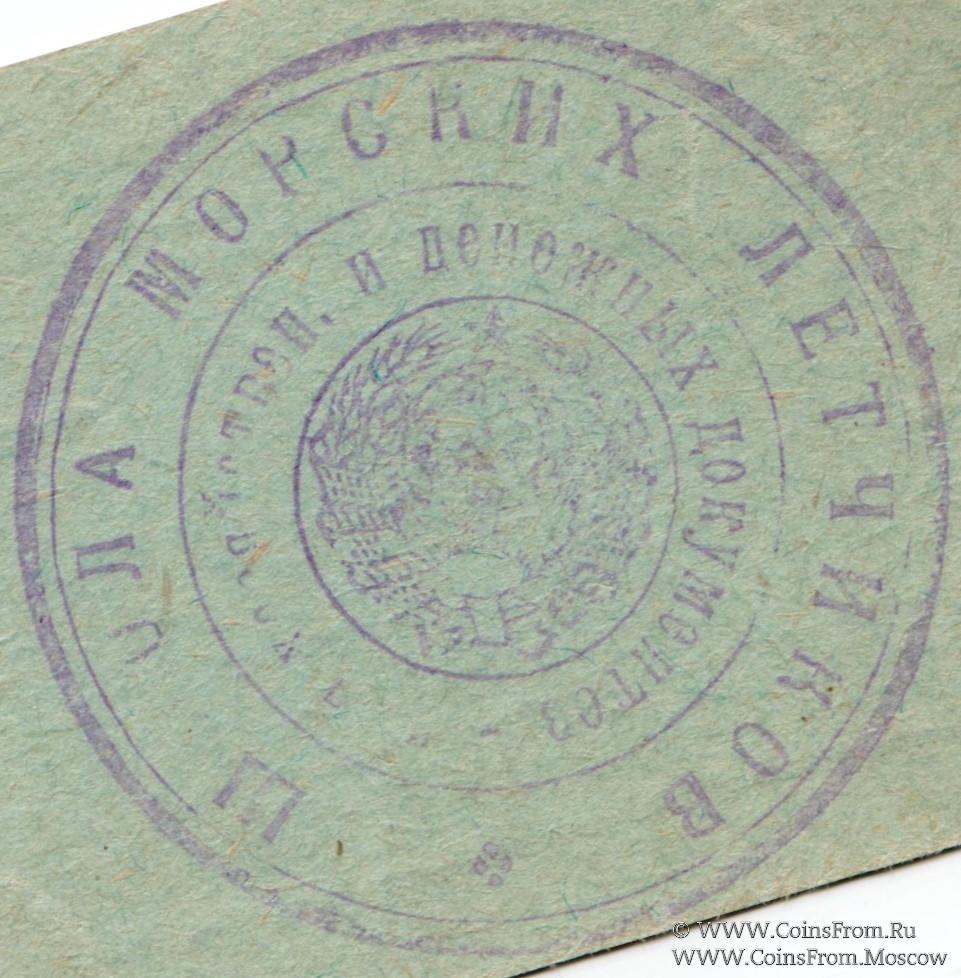 Печать коруглая: Герб СССР (по центру) / "ШКОЛА МОРСКИХ ЛЕТЧИКОВ *" (по большому кругу) / "для хозяйствен. и денежных документов *" (по малому кругу).