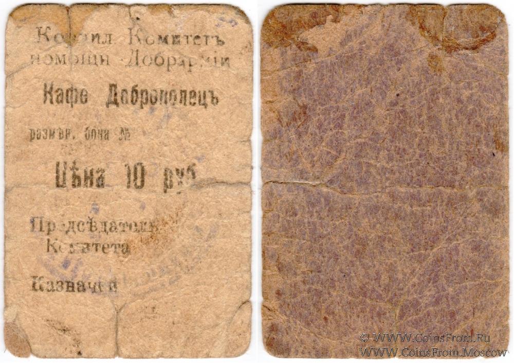 Разменная бона без даты (1920 г.). Корниловский Комитет помощи Добрармии. Кафе Доброволец.