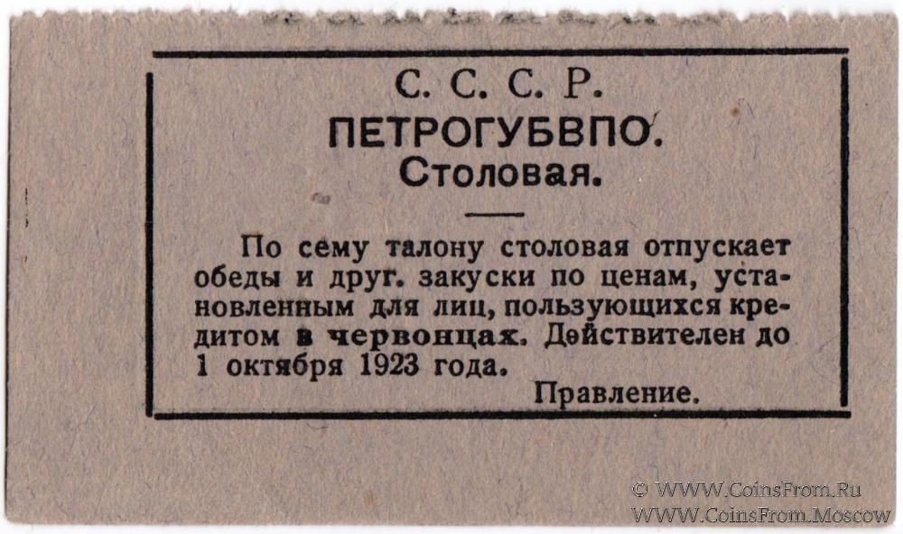 Талон (в червонцах, действителен до 1 октября 1923 г.). Бланк. Фиолетовый.