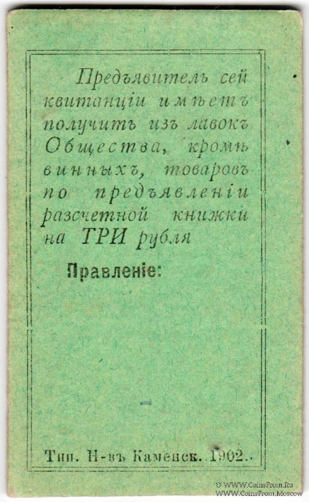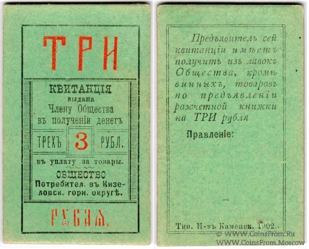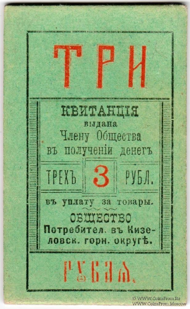 Квитанция без даты. Толстый картон. Номинал красный. Общество потребителей в Кизеловском Горном округе.