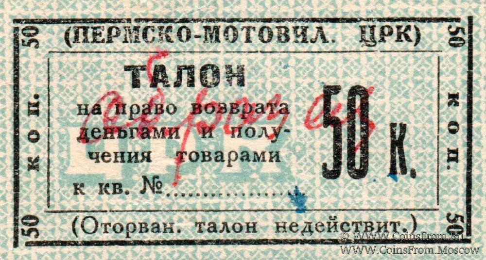 Печать круглая: по центру - рукопожатие и надпись "ЦЕРАБКООП" (сверху) "ПРАВЛЕНИЕ" (снизу) / по кругу - "Пермско-мотовилихинский * Центральный Раочий Кооператив *".