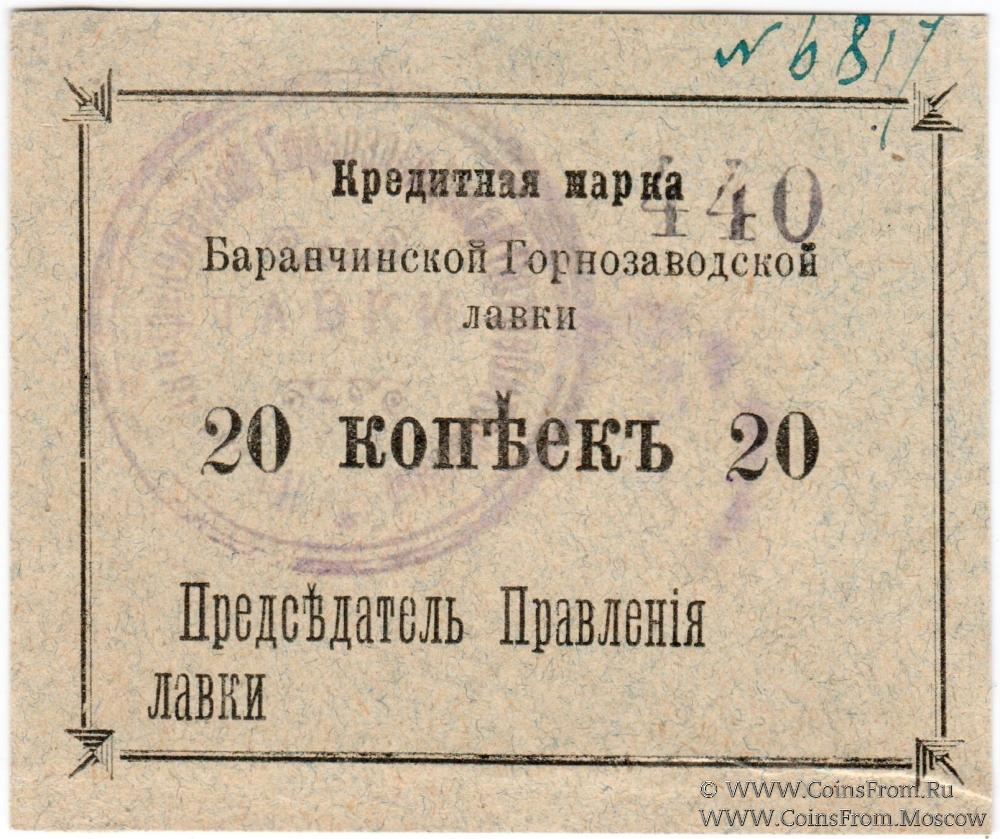 Печать круглая: "Правленiе Баранчинской Горнозаводской Потребительской *" (по кругу) / "ЛАВКИ." (по центру).