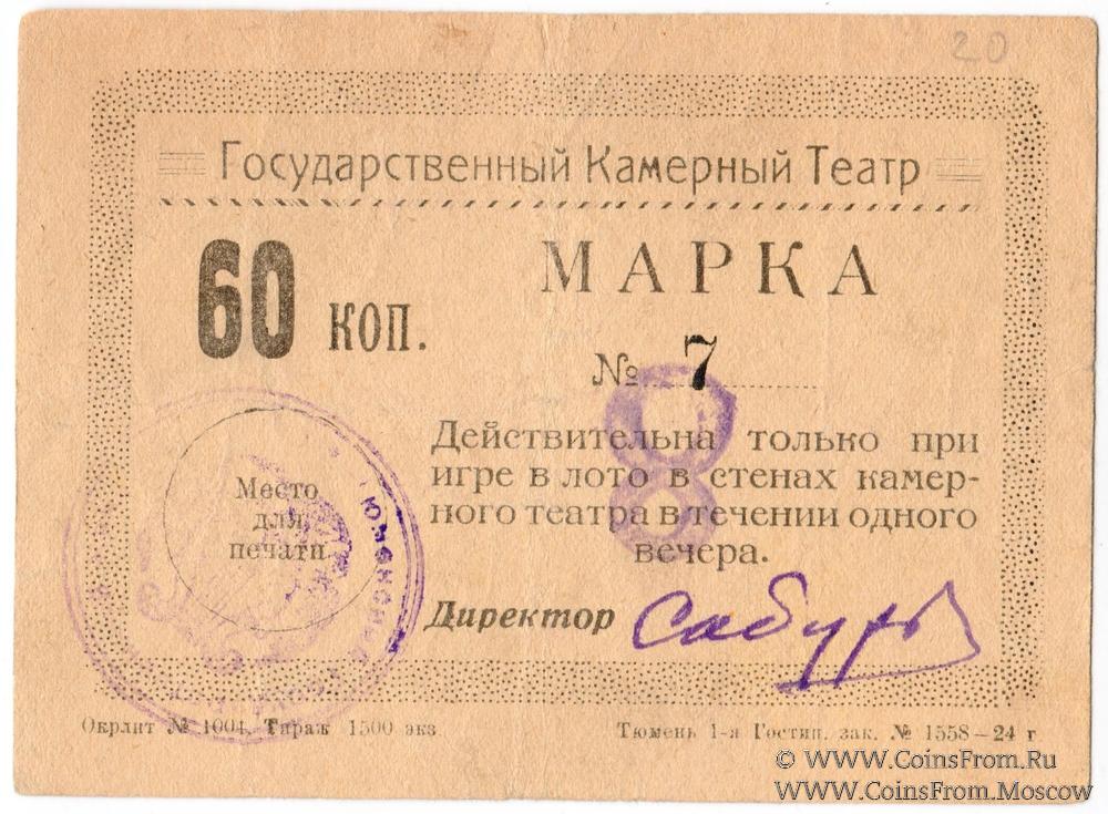 Марка без даты (1924 г.). На жёлтой бумаге. Тюменский Государственный Камерный Театр.