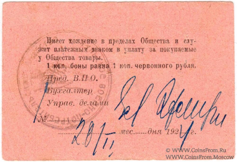 Бона. С печатью и подписью на реверсе. Тульское Военно-Потребительское Общество.
