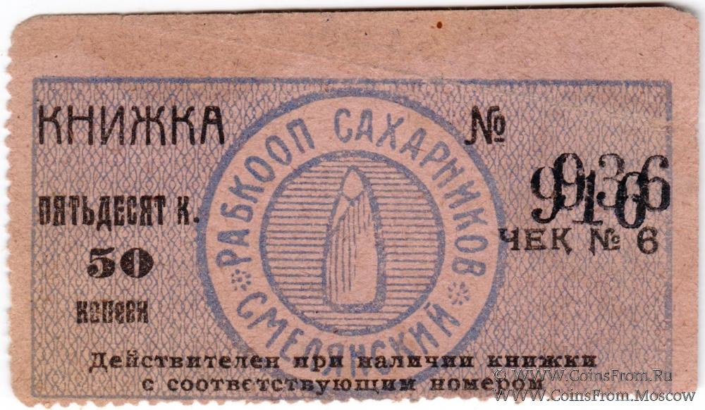 Без названия. БРАК нумератора: двойной номер (916_936). Чек № 6. Рабочий кооператив сахарников Смелянский.