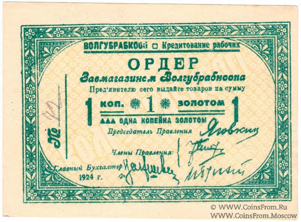 Ордер. С номером (рукописный). Волынский губернский рабочий кооператив "Волгубрабкооп".