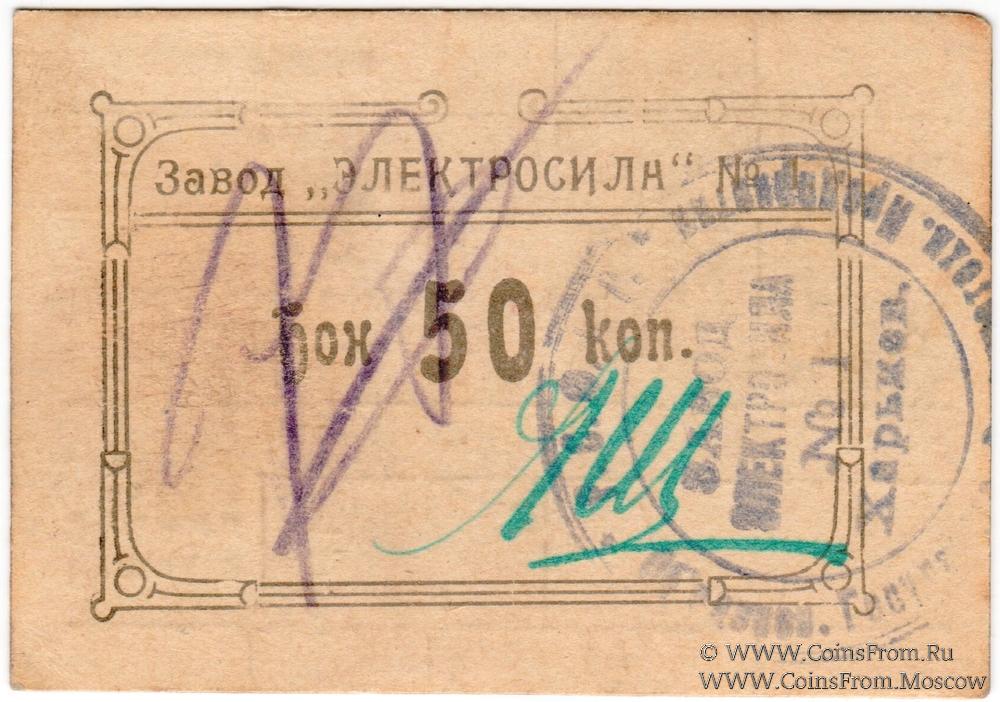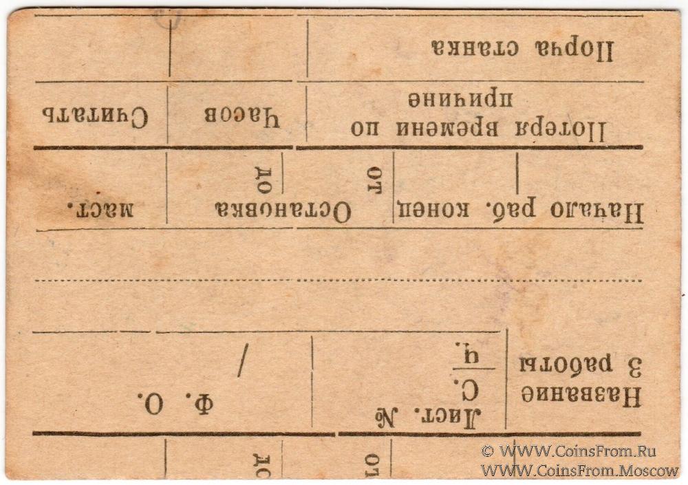 Бон без даты (1922 г.). Подпись синяя (зелёная). Завод "Электросила" №1.