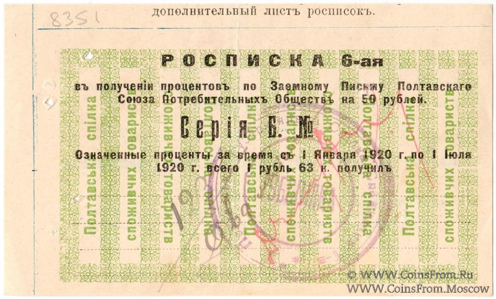 Печать круглая: "ГУБСПIЛКА" (по центру) / "Полтавська Губернiяльна Спiлка Споживчив Т-в (Товариств) *** " (по кругу). (ГУБСОЮЗ / Полтавский Губернский Союз Потребительских Обществ).