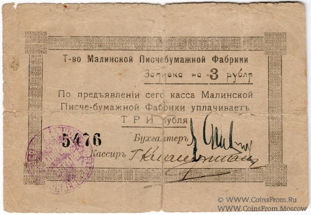 Записка без даты. Товарищество Малинской Писчебумажной Фабрики.