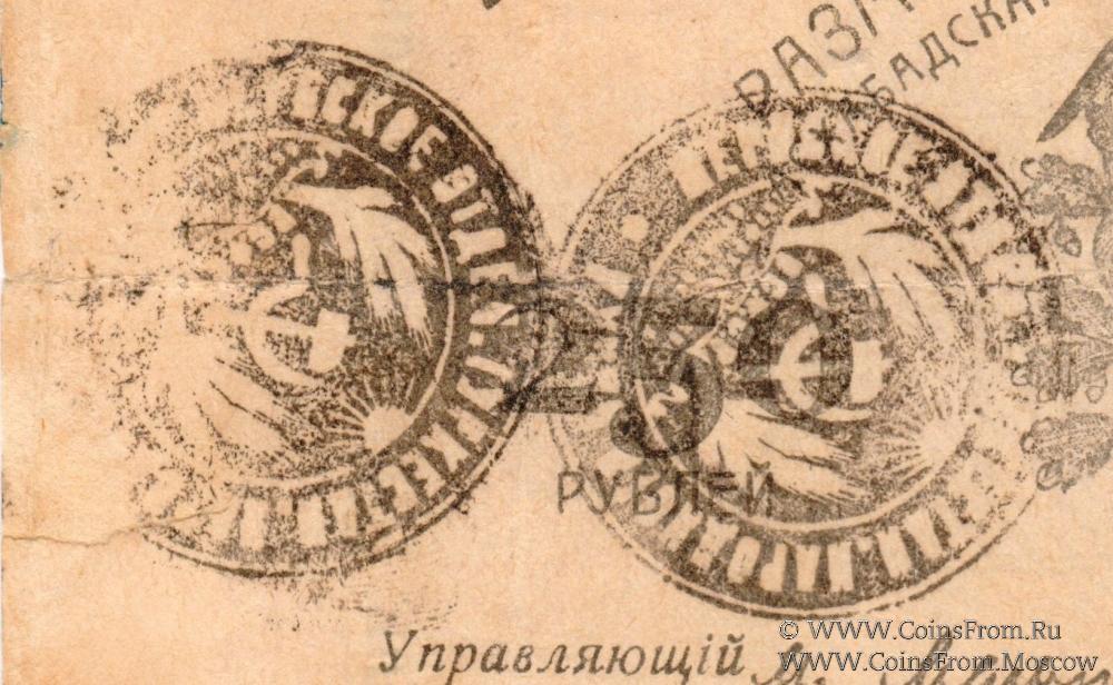 Без печати Ашхабадского банка. Две печати (33 мм) чёрного цвета Мервского отделения на аверсе.