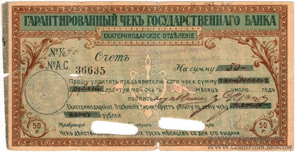 Печать: большой орел, текст: "Екатеринодарское отдъл. Государственнаго Банка".