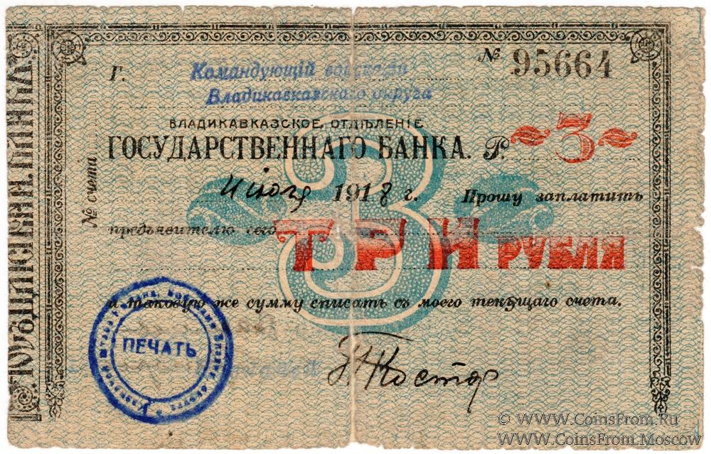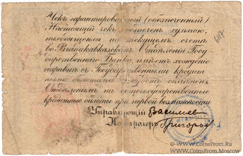 Счет "Командующiй войсками Владикавказского округа".