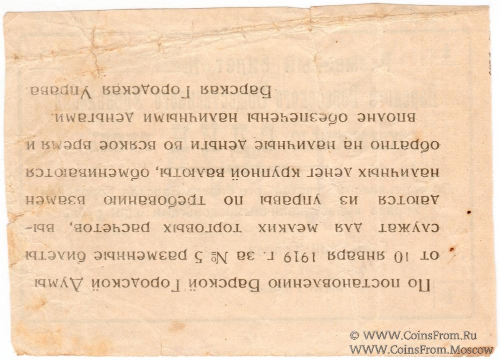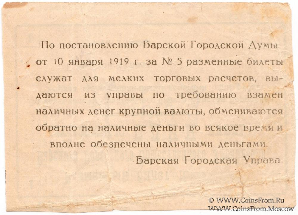 Разменный билет. БРАК: реверс перевернут. Цифры года меньше. Барское Городское Общественное Управление.