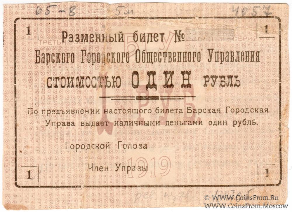 1 рубль 1919 г. (Бар) БРАК