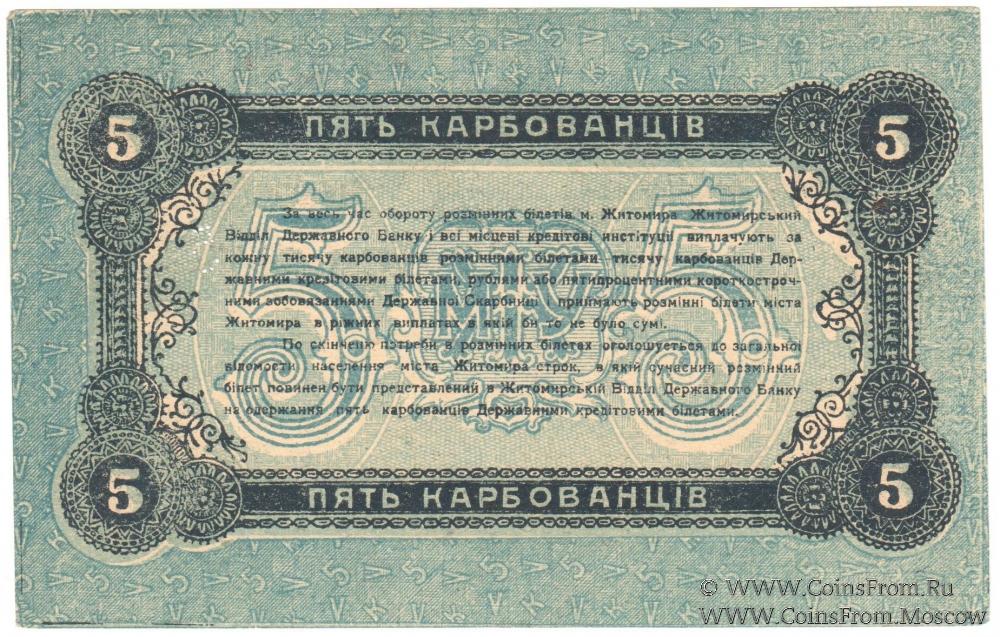 5 карбованцев 1918 г. (Житомир)