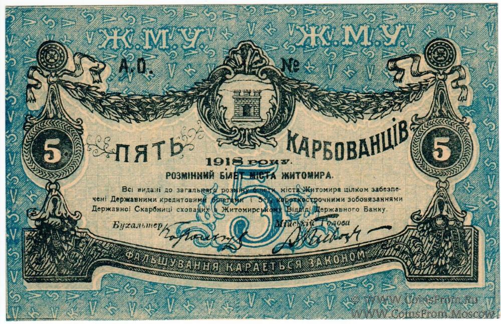 5 карбованцев 1918 г. (Житомир)