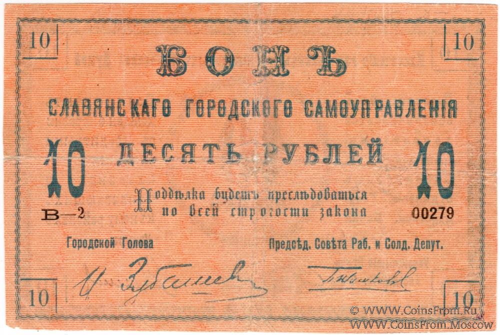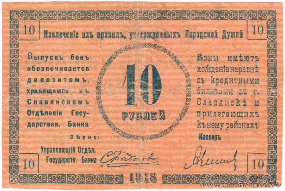 10 рублей 1918 г. (Славянск)