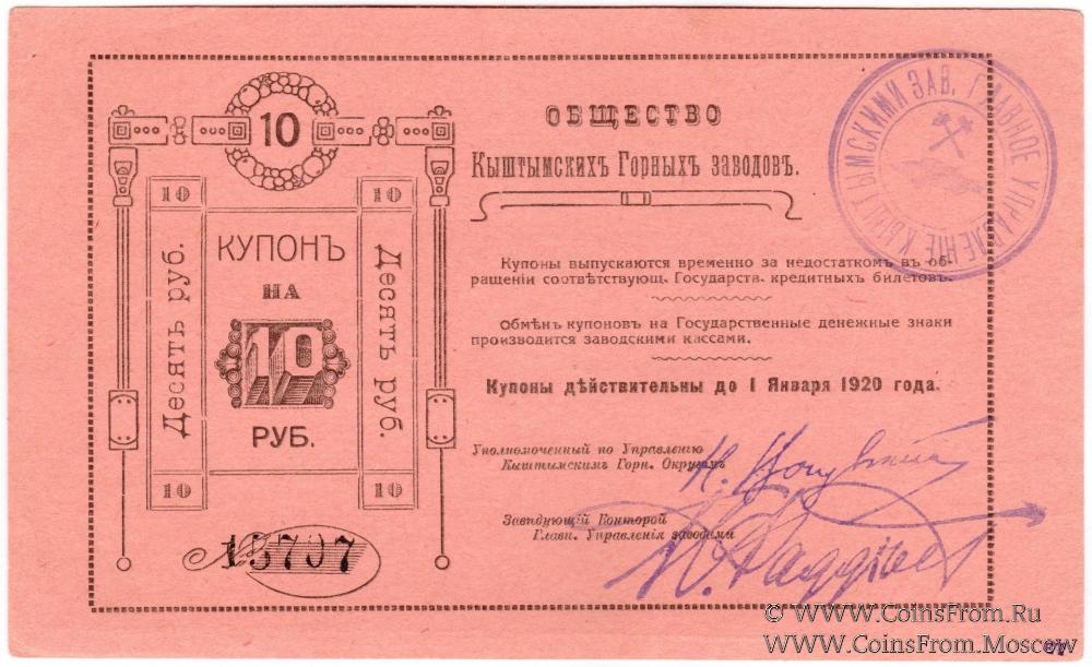 Купон без даты (1919 г.). 2-й выпуск. Действителен до 1 января 1920 г. Номер 5-значный. Общество Кыштымских Горных Заводов.