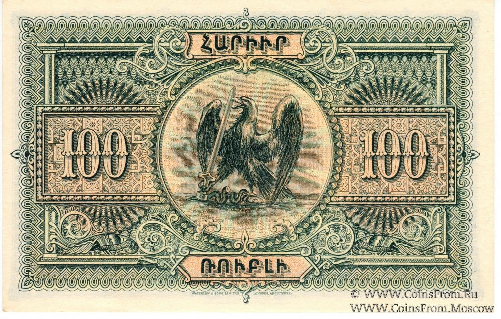 Литера Ա, на серо-желтоватой бумаге. Выпуск Дашнакского пр-ва. Билеты английского изготовления (WATERLOW & SONS LIMITED, LONDRES, ANGLETERRE).