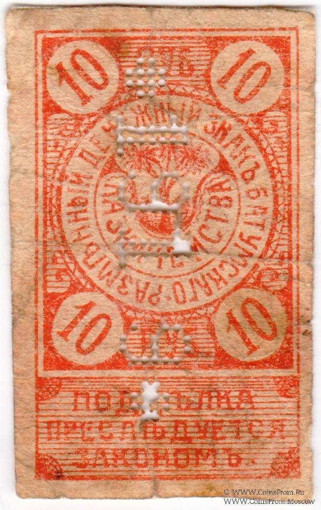 Разменный денежный знак без даты (1919 г.). Красный. Перфорация "*1919*". Батумское Казначейство.