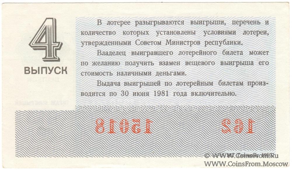 Билет. Выпуск 4. Денежно-вещевая лотерея 1980 г.