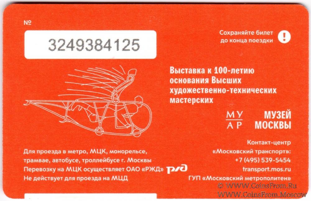 Выпуск билета приурочен к открытию 10 ноября 2020 года в Музее Москвы масштабной экспозиции "ВХУТЕМАС 100. Школа авангарда", посвящённой юбилею Высших художественно-технических мастерских — главного творческого института страны, определившего путь дизайнерского образования в России в XX веке. На карте изображена транспортная капсула из дипломного проекта "Город будущего (эволюция архитектурных принципов в планировке городов и организации жилища)", выполненного Георгием Крутиковым в 1928 году.