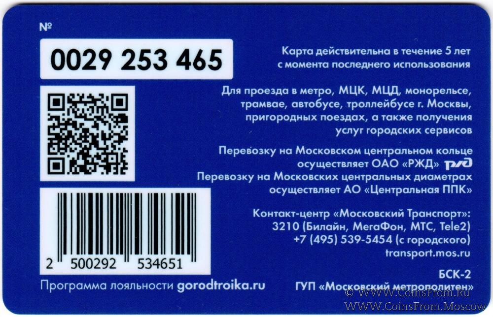 Карта залоговая (0029) действительна в течение 5 лет с момента последнего использования. Для проезда в метро, МЦК, МЦД, монорельсе, трамвае, автобусе, троллейбусе г. Москвы, пригородных поездах, а также получения услуг городских сервисов.