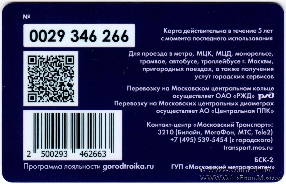 Карта залоговая (0029) действительна в течение 5 лет с момента последнего использования. Для проезда в метро, МЦК, МЦД, монорельсе, трамвае, автобусе, троллейбусе г. Москвы, пригородных поездах, а также получения услуг городских сервисов.