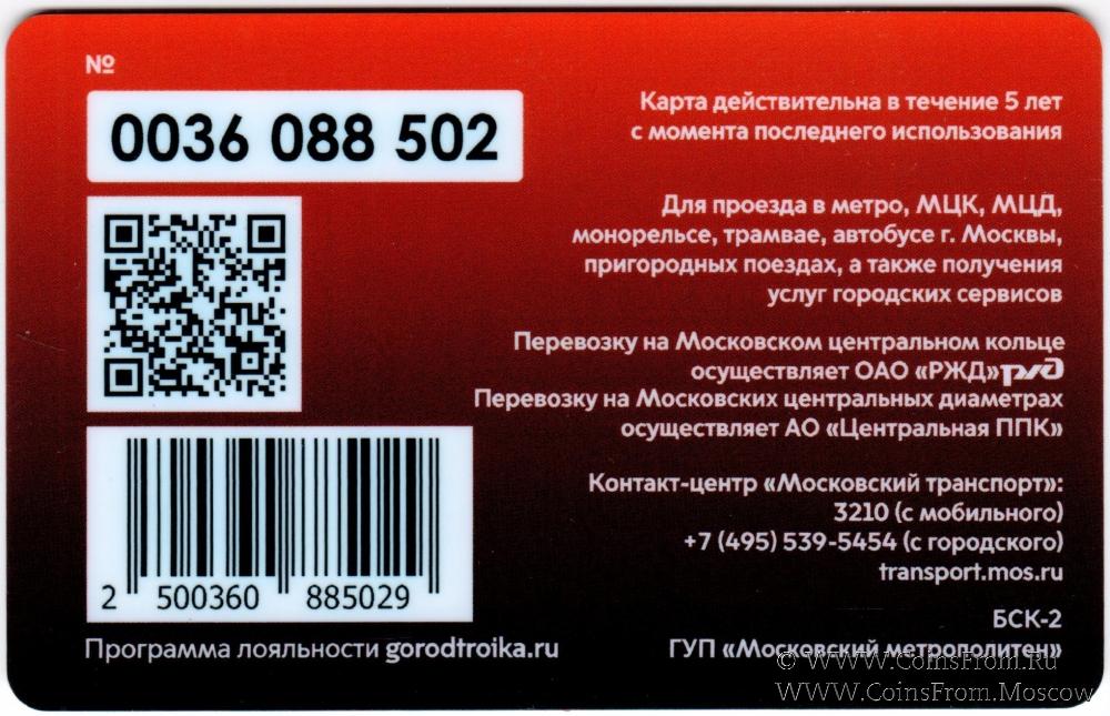 Карта залоговая (0036), действительна в течение 5 лет с момента последнего использования. Карта действительна в течение 5 лет с момента последнего использования. Для проезда в метро, МЦК, МЦД, монорельсе, трамвае, автобусе г. Москвы, пригородных поездах, а также получения услуг городских сервисов.