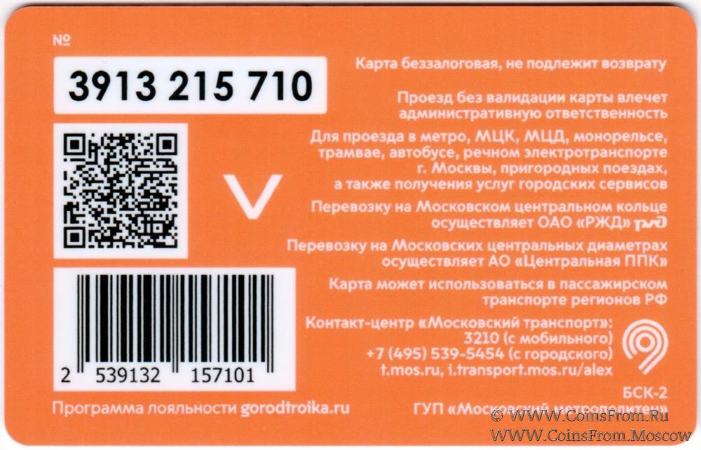 Карта сувенирная (3913) беззалоговая, не подлежит возврату. Проезд без валидации карты влечет административную ответственность. Для проезда в метро, МЦК, МЦД, монорельсе, трамвае, автобусе, речном электротранспорте г. Москвы, пригородных поездах, а также получения услуг городских сервисов.