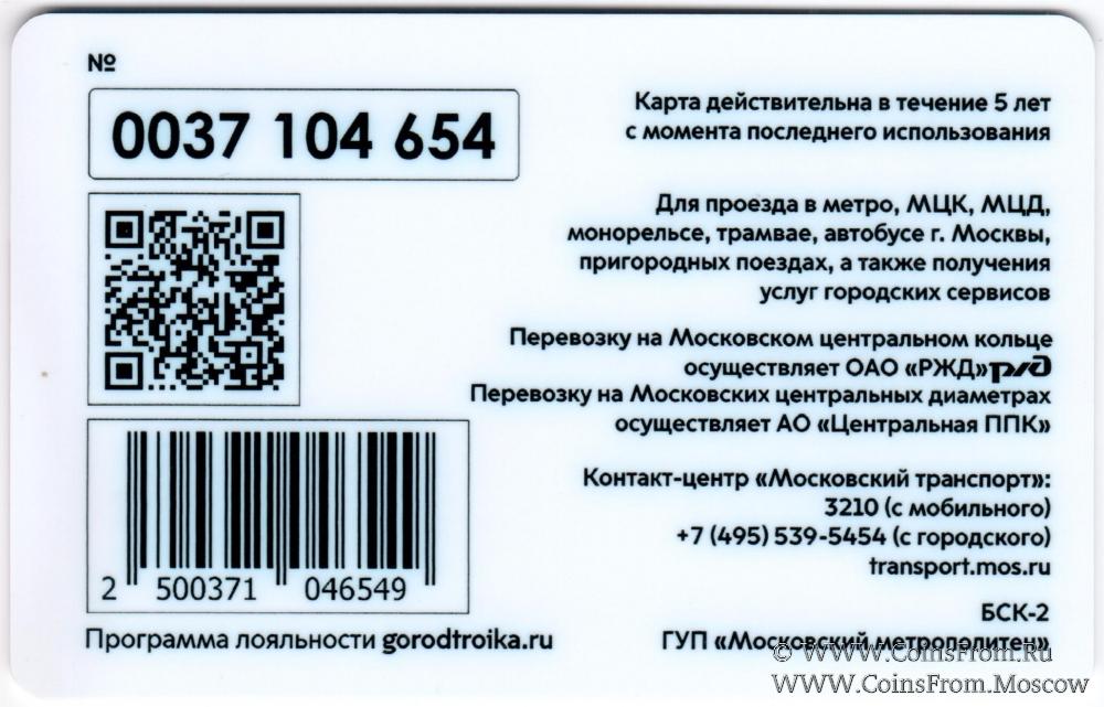 Карта залоговая (0037) действительна в течение 5 лет с момента последнего использования. Для проезда в метро, МЦК, МЦД, монорельсе, трамвае, автобусе г. Москвы, пригородных поездах, а также получения услуг городских сервисов.