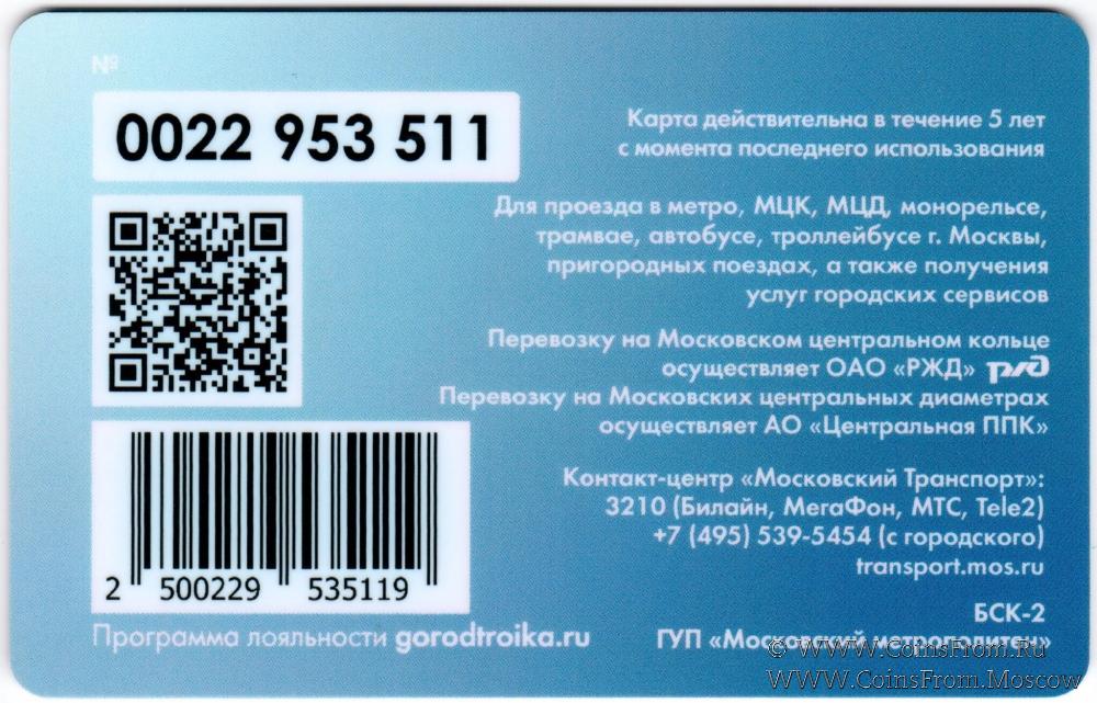 Карта залоговая (0022) действительна в течение 5 лет с момента последнего использования. Для проезда в метро, МЦК, МЦД, монорельсе, трамвае, автобусе г. Москвы, пригородных поездах, а также получения услуг городских сервисов.
