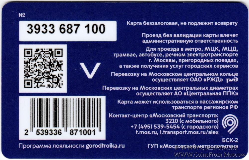 Карта подарочная (3933) беззалоговая, не подлежит возврату. Проезд без валидации карты влечет административную ответственность. Для проезда в метро, МЦК, МЦД, трамвае, автобусе, речном электротранспорте г. Москвы, пригородных поездах, а также получения услуг городских сервисов.