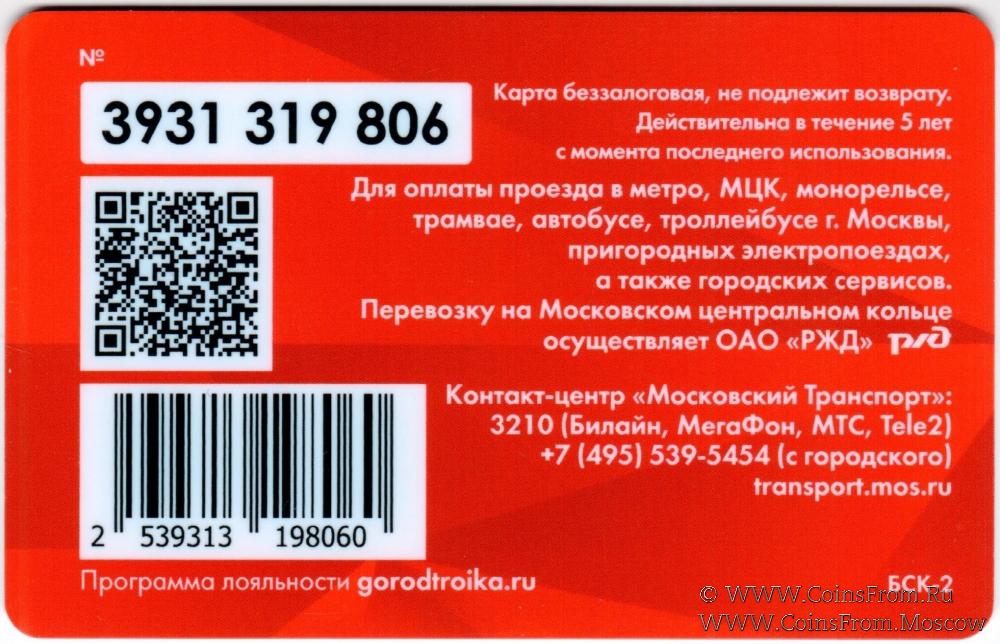 Карта сувенирная (3931) беззалоговая, не подлежит возврату. Для оплаты проезда в метро, МЦК, трамвае, автобусе, троллейбусе г. Москвы, пригородных электропоездах, а также городских сервисов.